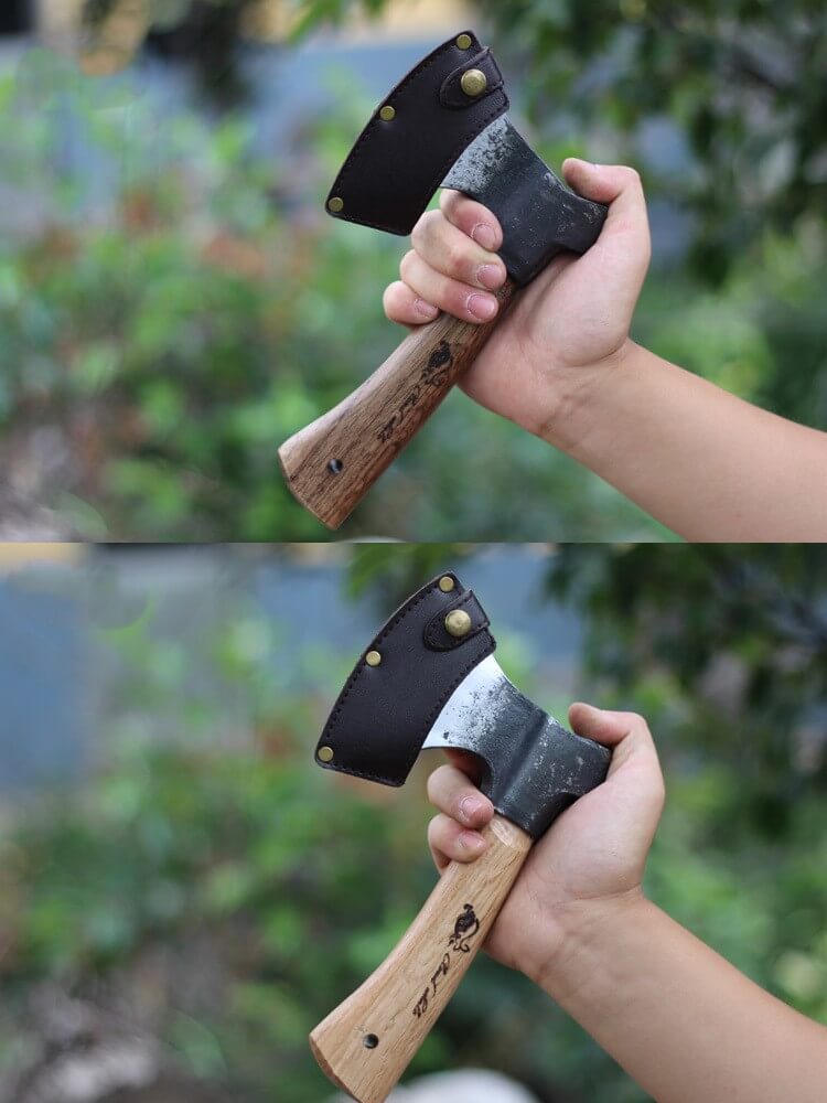 With a perfectly balanced head and a 7.48-inch oak handle, this hatchet delivers controlled, efficient strikes. The 3.54-inch curved cutting edge bites deep into wood, making quick work of splitting kindling and processing small logs for your campfire. The compact size and 1.1 lb weight make it manageable for detailed carving tasks, yet it packs enough heft for its primary splitting duties. It’s the ultimate “Goldilocks” size—not too big, not too small.